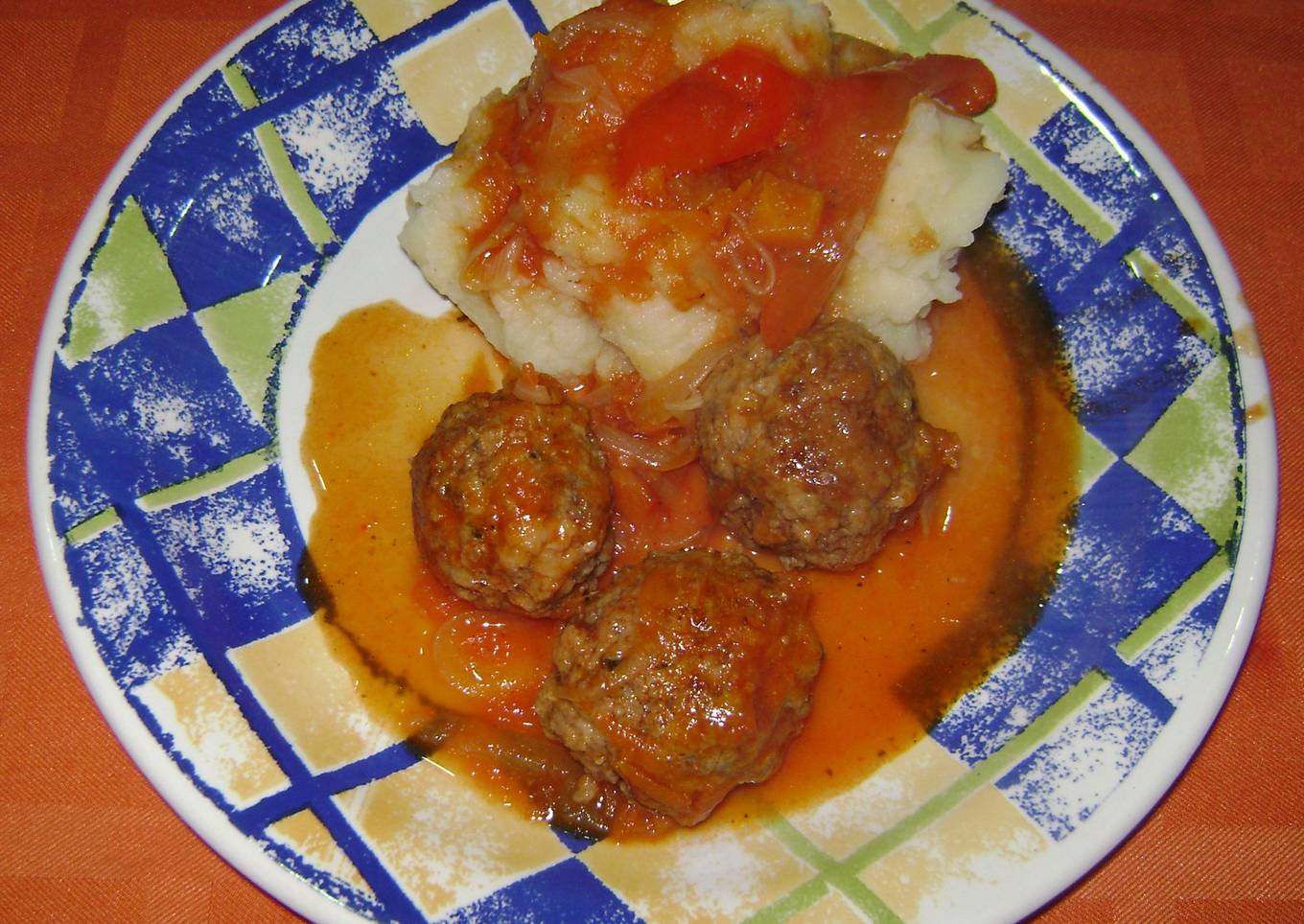 Albóndigas estofadas con puré de papas